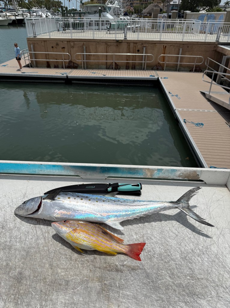 We ran into the Spanish mackerel again on our way back to the inlet. This time, I switched tactics and decided to troll a Yo-Zuri shallow diver behind the boat. That was the magic move. It didn’t take long before I hooked up. The first fish got off right at the boat — classic heartbreak moment — but soon after, we landed a beautiful 27-inch Spanish mackerel.