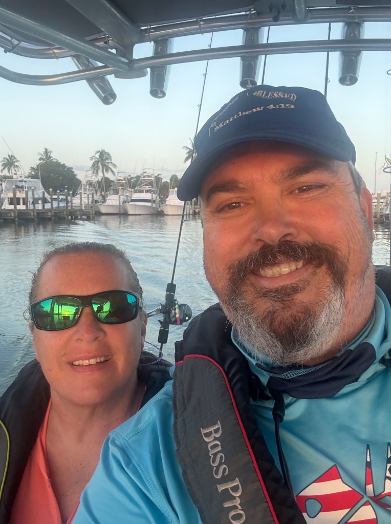It had been nearly a month since Tania and I had been offshore together. Saturday finally delivered the window we’d been waiting for, with clear skies, a light southeast breeze, and seas holding steady around two feet. We loaded up the boat with a couple of bags of ice, grabbed some lively shrimp from The Fishing Center, and hit the water early. By 7:00 a.m., we were heading out through the Ft. Pierce Inlet, greeted by a stunning sunrise that painted the sky in soft oranges and golds, the kind of start that makes every early morning worthwhile.