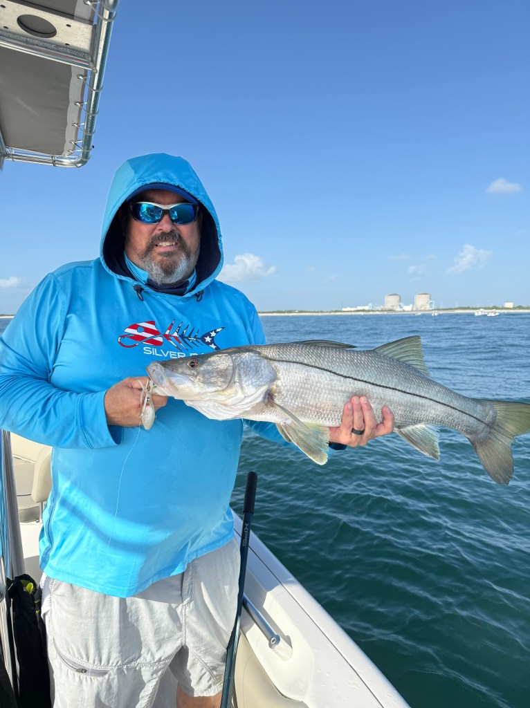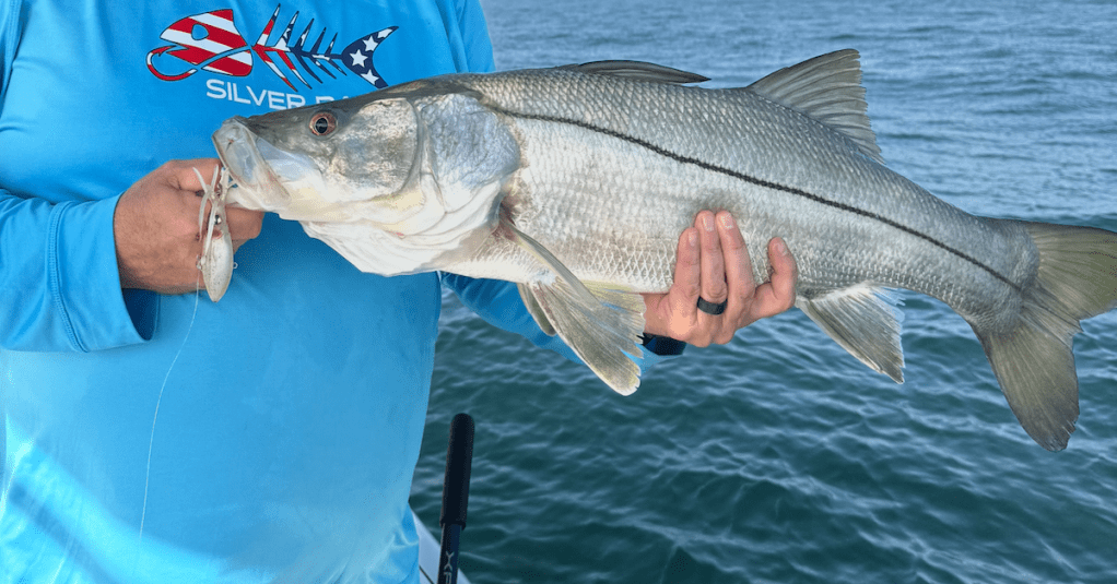 That final drift brought another burst of excitement. Both Tania and I had hits, though neither of us hooked up right away. Then, just as we were about to reel in, Tania connected with another big fish. Judging by the fight, I figured it was a shark, heavy, head shakes, long runs, but when it came into view, we were both shocked to see a 33-inch snook rise to the surface. It was an unexpected catch out there and a real highlight to cap off our morning at the Boils.