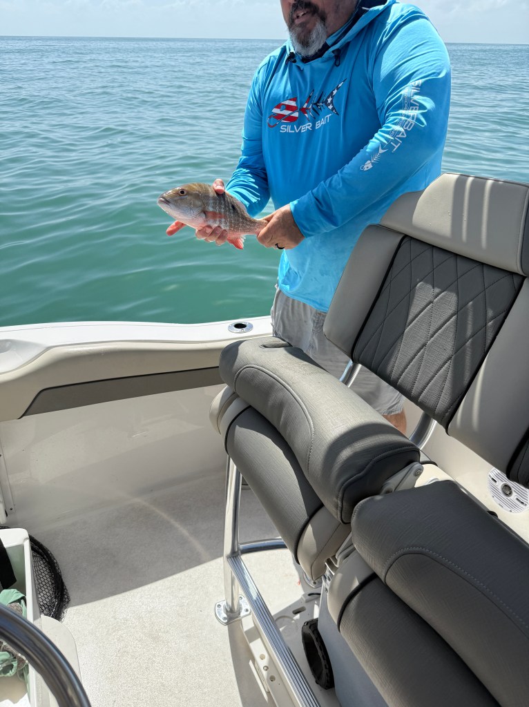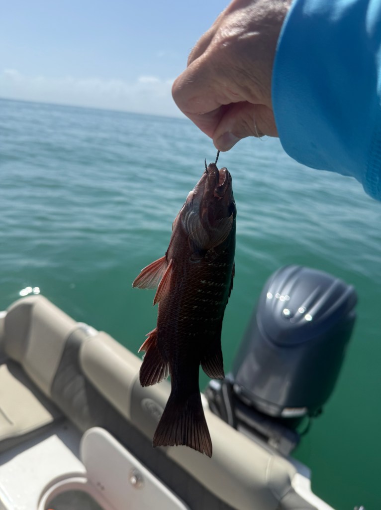 With the bite being slow, we decided to work our way back in and stop at a few shallow reefs right off the beach near the inlet. Armed with four dozen shrimp, we bounced around structure and had a blast catching fish on light tackle. Over the next hour or so, we went through all of our bait, catching around ten different species — everything from snapper, grunts, margates, porgies, and bluefish. It wasn’t wide-open action, but it was steady and fun, and it reminded us how much life those nearshore reefs can hold when you slow down and fish them right.