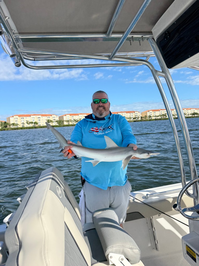 We made another move, this time to a spot south of the Harbor Isle condos. The pattern continued—plenty of short snapper but nothing to brag about. That changed when I hooked into something that put up a great fight—a 33-inch bonnethead shark. Not what we were after, but it was a fun surprise and a great fight on light tackle.