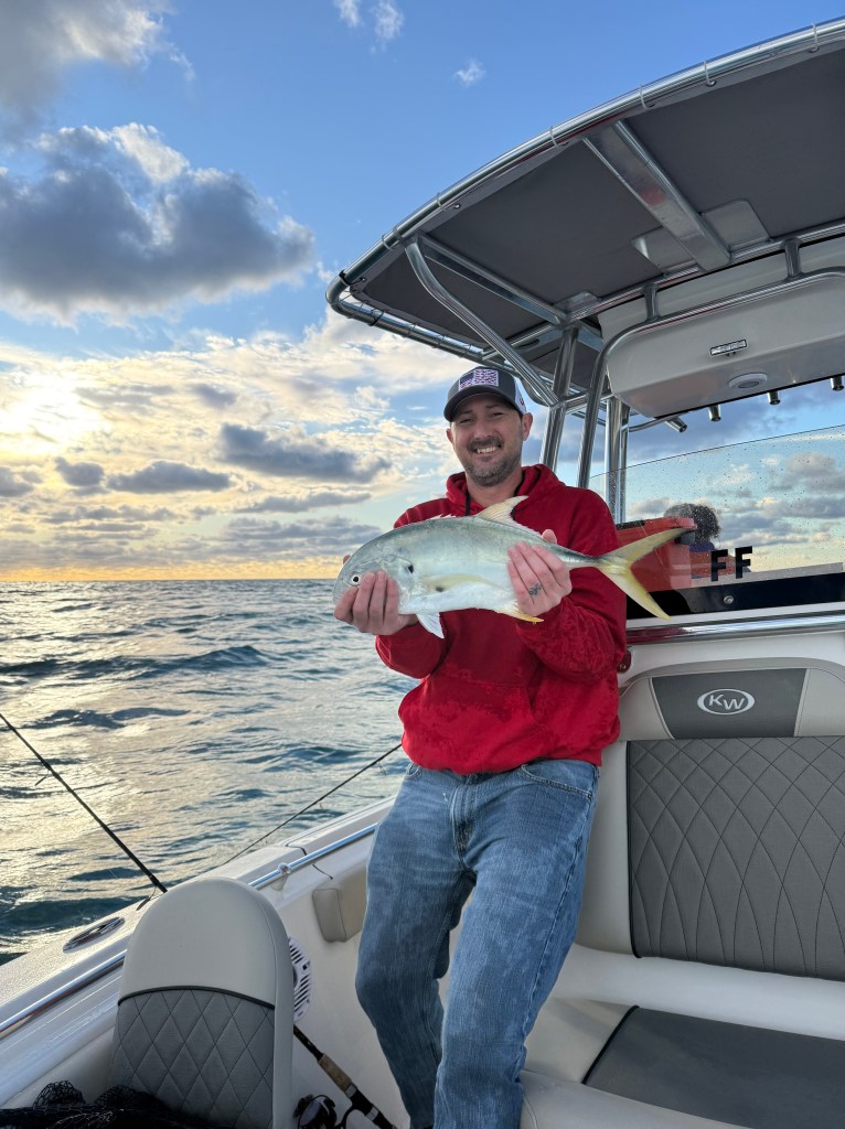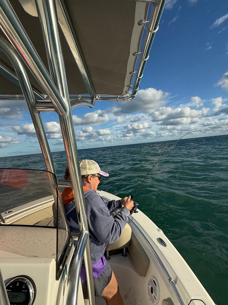 That move made all the difference. Over the next hour and a half, we stayed busy drifting and catching fish. We landed jacks, Spanish mackerel, bluefish, and blue runners. The highlight of this stretch came when Tania hooked into a massive spotted eagle ray, although we didn’t know what it was until we got it to the boat. The fight lasted about 15 minutes, and the ray took us for a ride. It was impressive to watch Tania stay patient and composed as she worked the fish all the way to the boat. Seeing such a large and beautiful creature up close is always humbling.