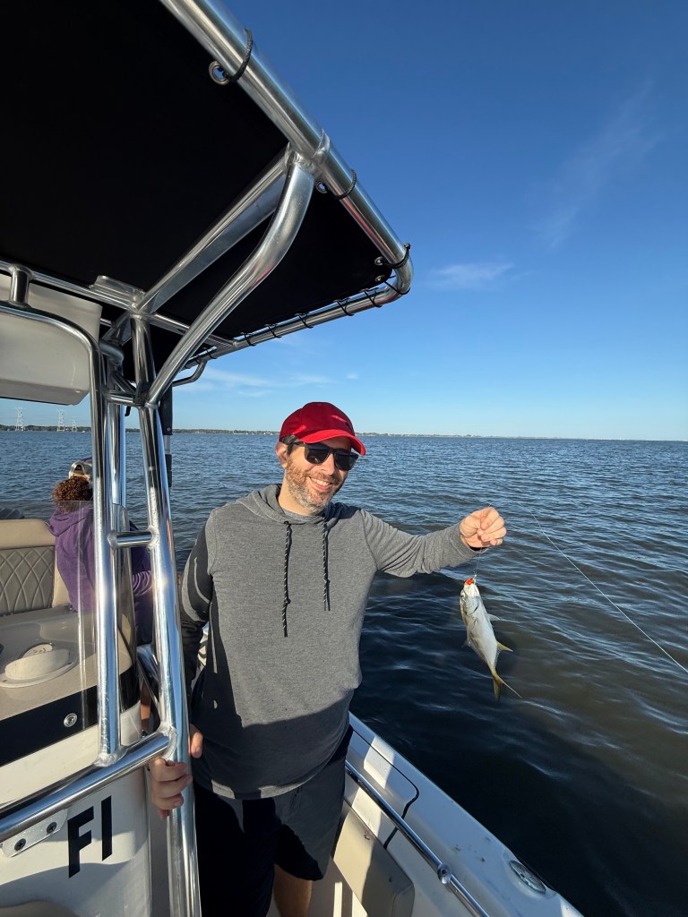 As we started to run low on bait, I decided to try a spot known to hold pompano. Unfortunately, it was not our day for them. Oliver did manage to land a jack, and Tania put a nice bend in the rod with a big lockdown, keeping things interesting.