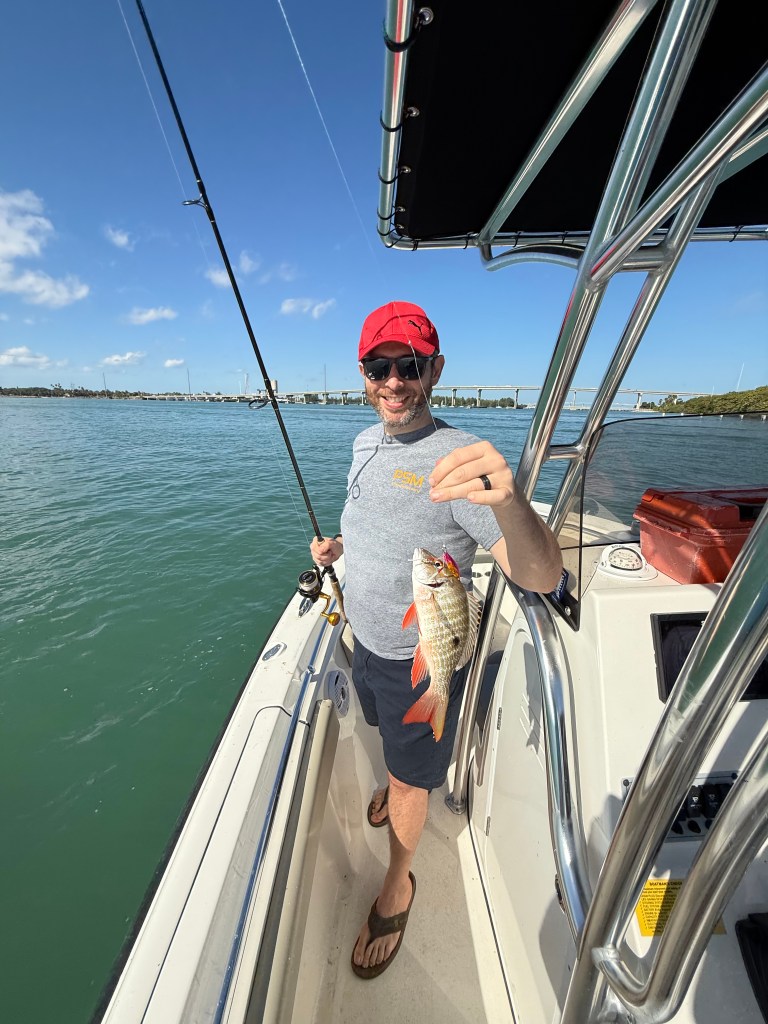 After a few more drifts with very little action, we decided to head back toward our usual spots near Harbor Isle in hopes of finding some snapper, especially since Oliver mentioned he enjoys eating snapper. Once again, it just was not our day. We caught several short mutton snapper, small lane snapper, and more than a handful of catfish.